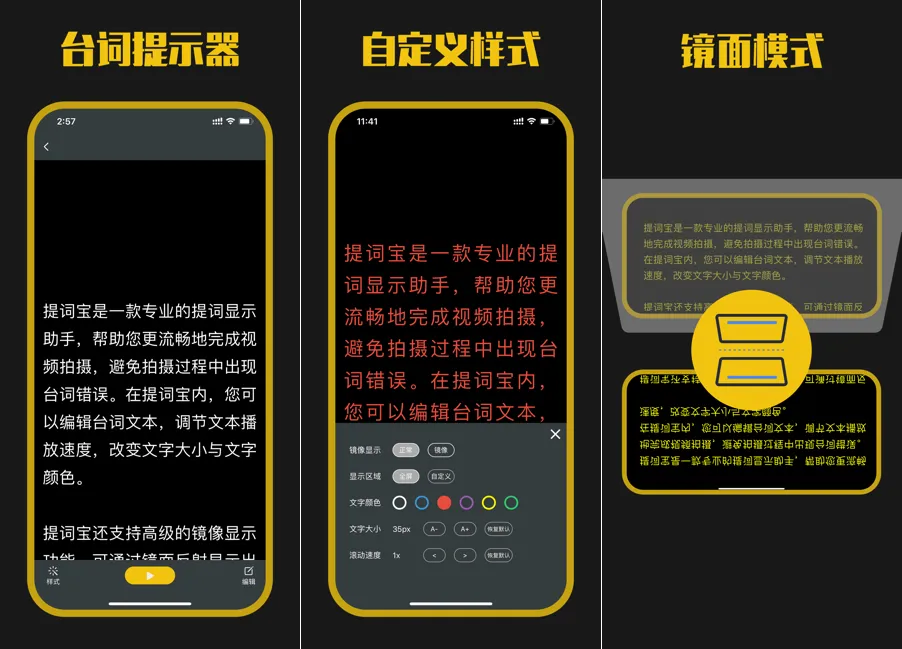 它还可以修改字幕的内容、文字、文字大小、滚动速度等等,支持镜面模式可以反射到镜子来显示。也支持悬浮窗模式,还可以设置速度和背景颜色。