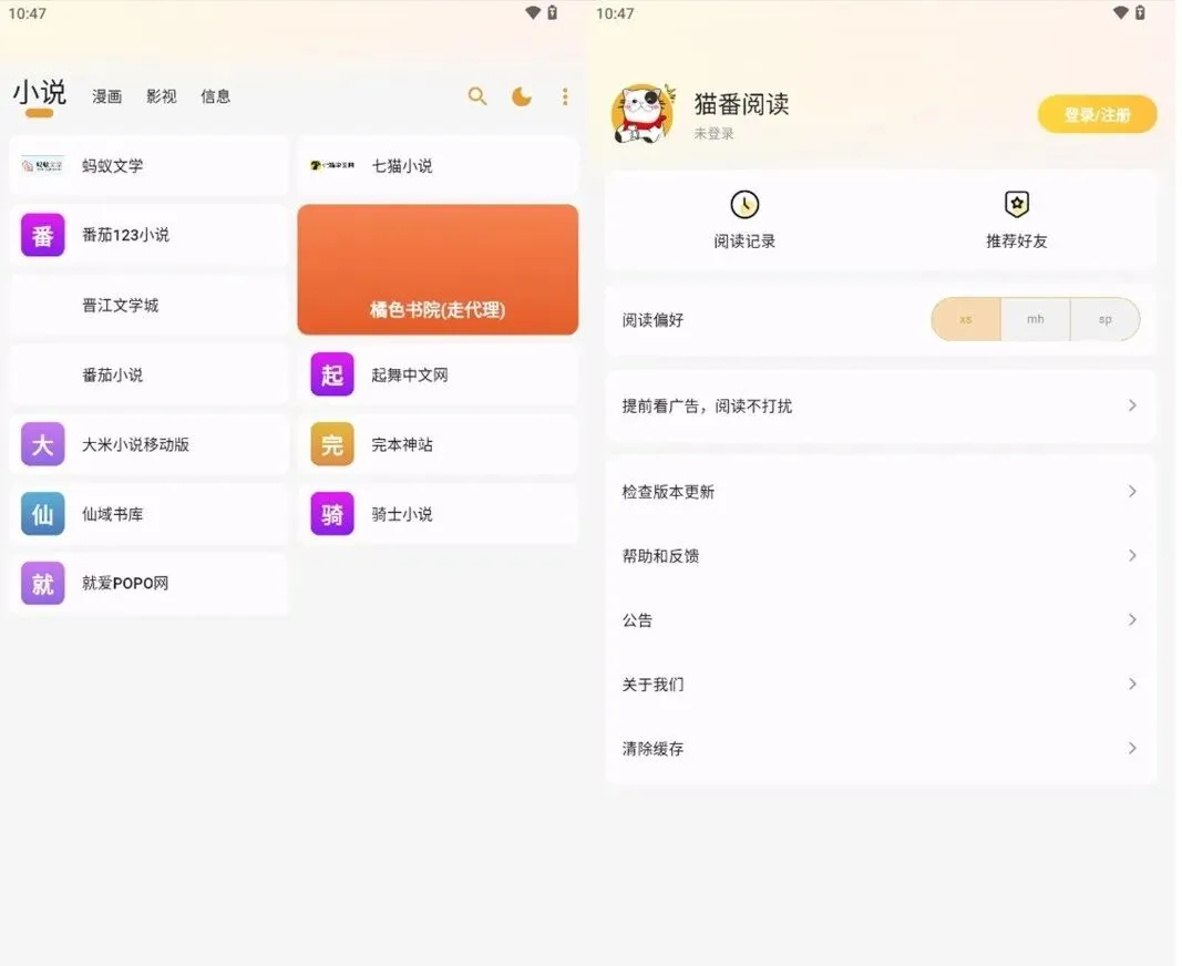 猫番阅读内所有小说、漫画均支持免费阅读,全程无广告打扰。软件汇集了全网最新最热门的漫画资源,无论是韩漫、日漫还是国漫,都能一网打尽。
