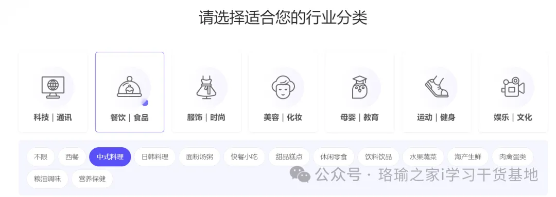 第三步:选择行业,然后点击下一步;