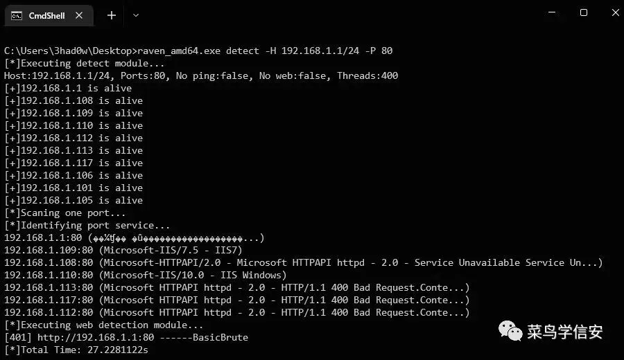 该工具内置Top1000端口探测同时也支持自定义端口探测,支持最新规则进行服务指纹识别,支持对SSH/SMB/Mysql/SqlServer/WinRM/Redis/MongoDB等服务进行密码喷洒式爆破、支持Netbios主机名识别及多网卡探测。