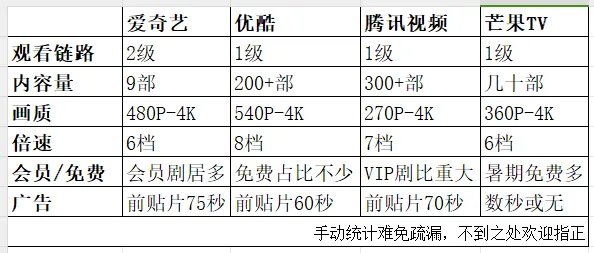 画质最低360P,另有480P,免费最高享受720P,会员可以享受1080P,1080P高码率、4K。倍速:0.5、0.75、1、1.25、1.5、2倍6档。