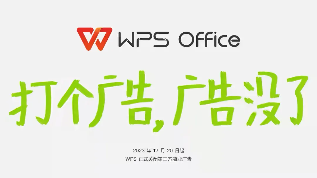 WPS 今日宣布,将在 WPS Office 国内个人版中正式关闭第三方商业广告。用户只需升级应用至最新版本,即可获得更清爽的办公体验。