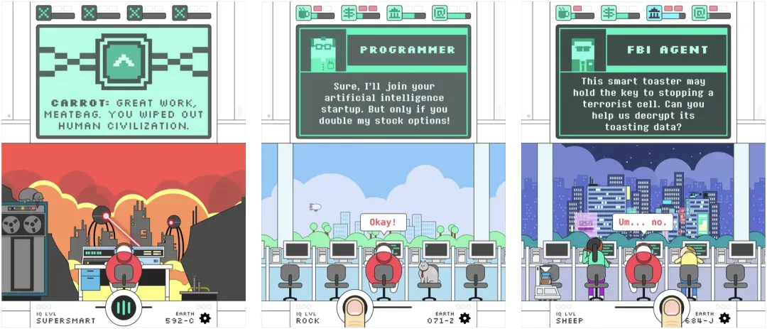 「Artificial Superintelligence」是一款剧情向的选择分叉形游戏,游戏中你将扮演一家初创公司的创始人,并带领团队打造具有感知能力的 AI。游戏中你可以通过左右滑动来训练 AI ,并让来满足硅谷居民的奇怪要求…「Artificial Superintelligence」原价 25 元,目前限免中。