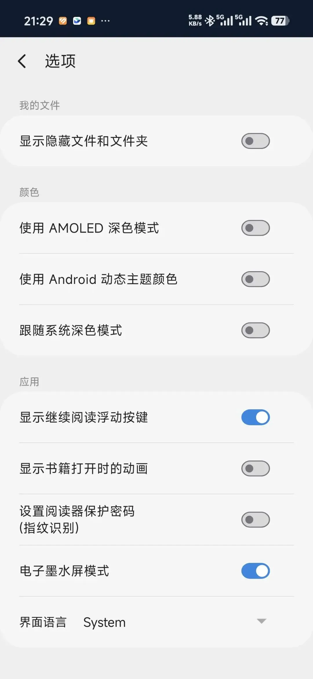 设置页面也很详细,并且还可以设置墨水屏模式