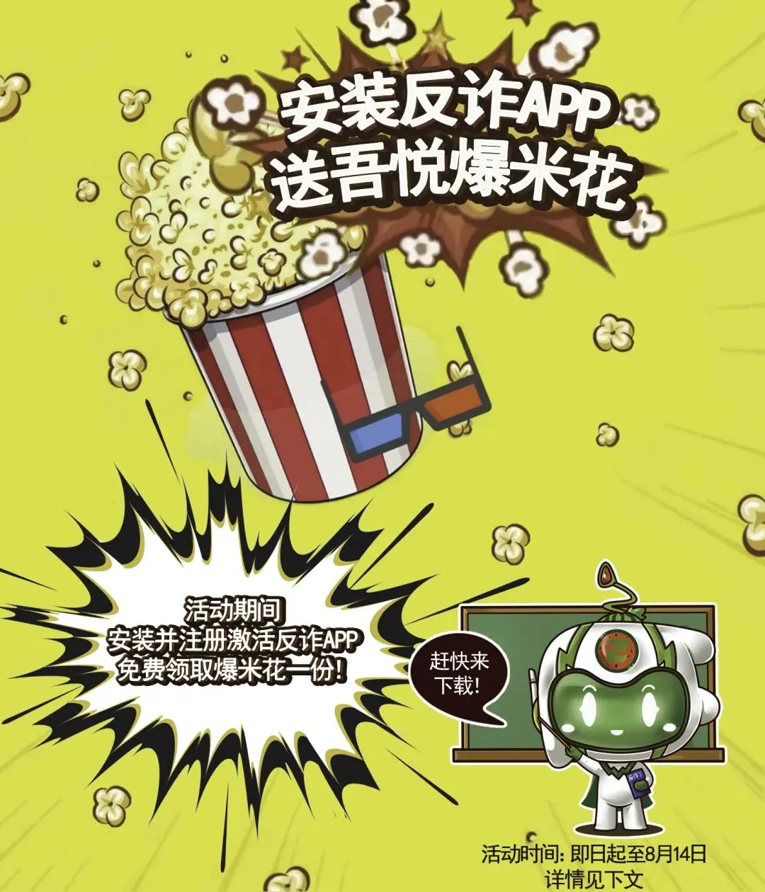 第三步:8月13日至14日,凭短信至吾悦广场4号门领取爆米花一份