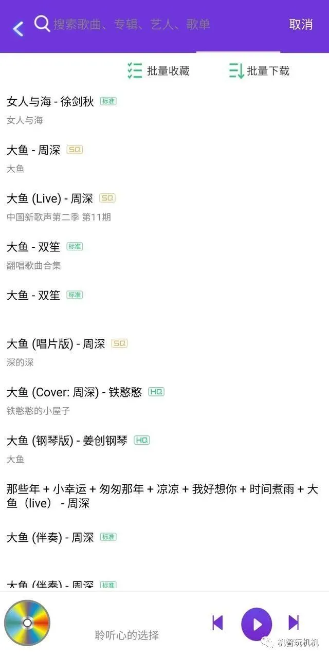 再接下来就搜索歌曲,基本上想听的歌都能第一时间搜索到,无论是新歌还是老歌都没问题。至少我想听的歌都可以搜到。而搜到歌曲之后无非就是在线听和下载两种。下载的话可以把你搜索到的歌曲批量下载,非常贴心。