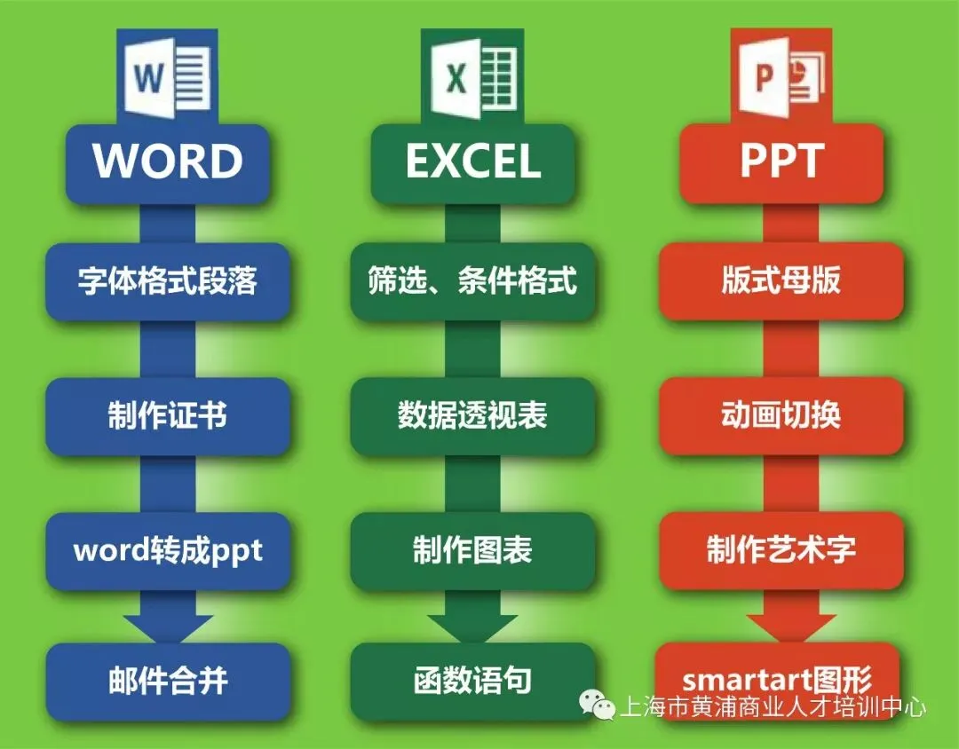 1. 通过本次培训,能够熟练掌握理论知识和操作技能,让你轻松操作Windows、Excel、PowerPoint,学习各类运用公式实现简便运算、运用PPT制作各类漂亮的图表、运用WORD制作各种回报和文案等。