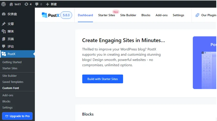 首先下载插件Post Grid Gutenberg Blocks for News, Magazines, Blog Websites – PostX 5.0.3,