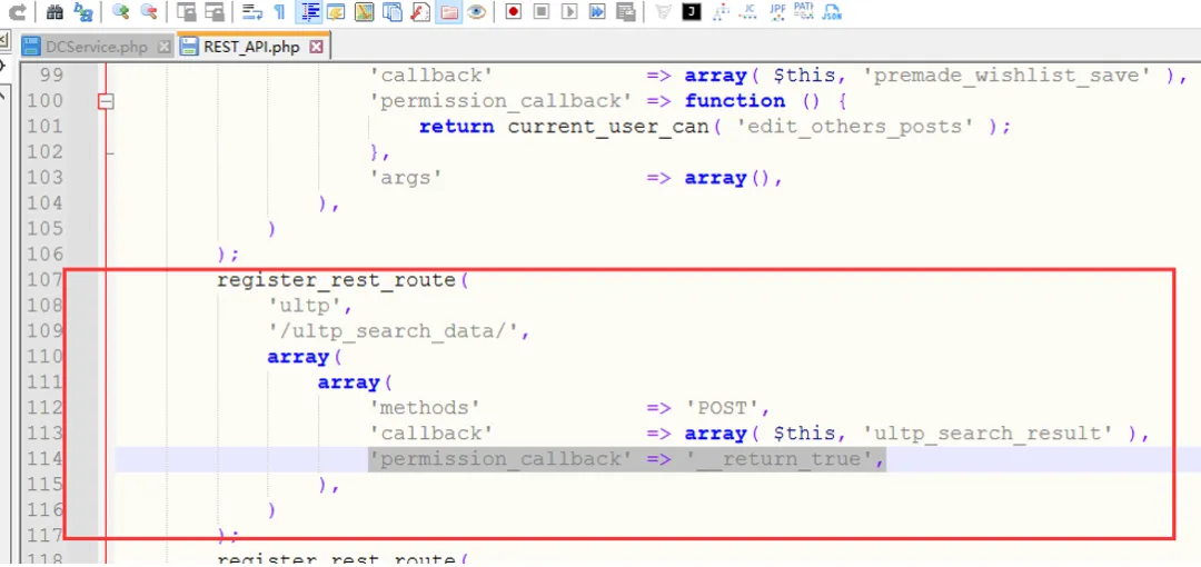 直接使用‘permission_callback’ => ‘__return_true’,,而未对权限进行校验;同样情况还存在ultimate-post\classes\REST_API.php约107-117行: