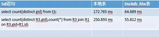 • 本地表与duckdb表性能对比