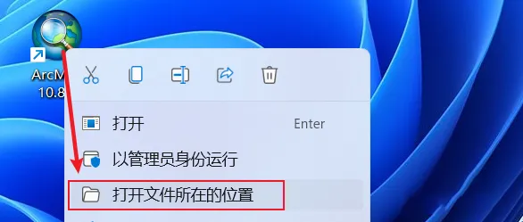18、在桌面上找到”ArcMap 10.8.1“软件快捷方式图标,鼠标右键点击“打开文件所在位置”。