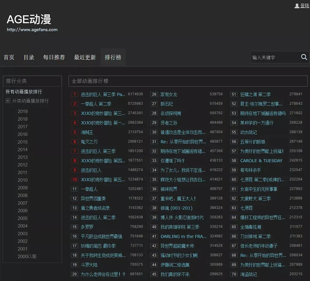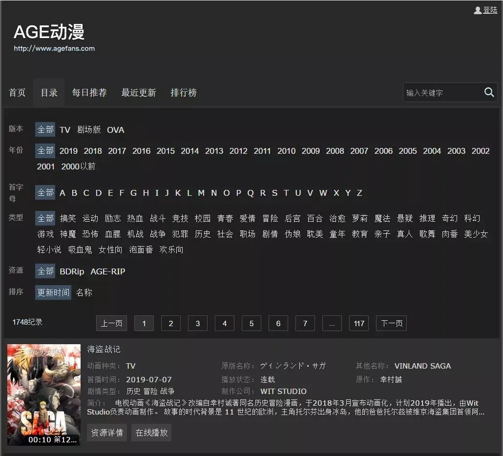 网站中如果我们不知道看什么样的话,可以在目录上面看,网站目录做的是真的挺好的,比较详细,有版本、年份、类型等等目录。
