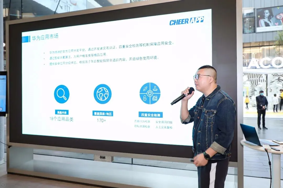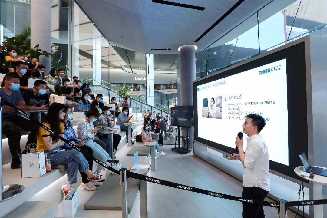 11月14日下午,华为应用市场2020能量季“Cheer App分享会”登陆华为全球旗舰店·深圳万象天地。特邀嘉宾VUE Vlog摄影达人、商务拓展总监叶润带来一场《影像,记录生活美好印象》的主题分享,和现场观众一起畅谈影像方面的干货和技巧。