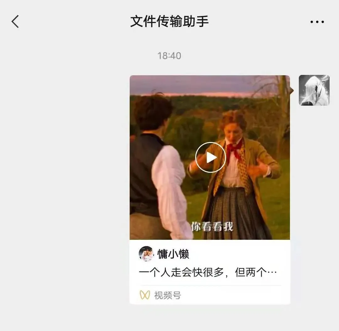 接着打开电脑版微信,因为目前电脑版微信暂不支持打开视频号,所以我们将要下载的视频通过手机转发到“文件传输助手”(发给其他人也行)