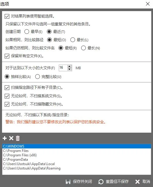 在扫描时它默认查找子目录、不扫描系统文件、不扫描隐藏文件。另外,软件还可以设置扫描的排除文件目录。