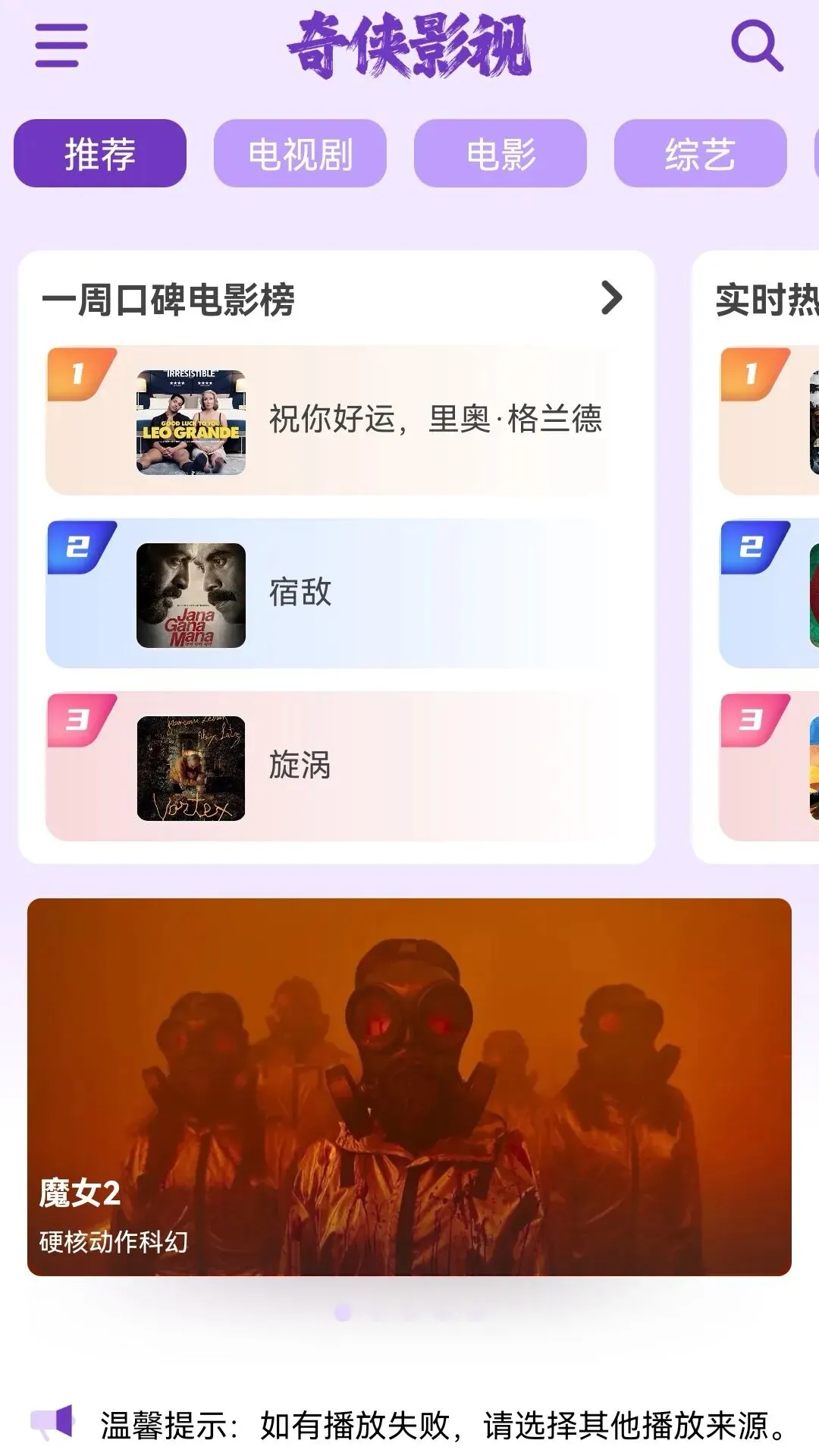 而且每一个影视都有多个视频源,一个视频源不行了可以随时切换,但是功能都是一样的~