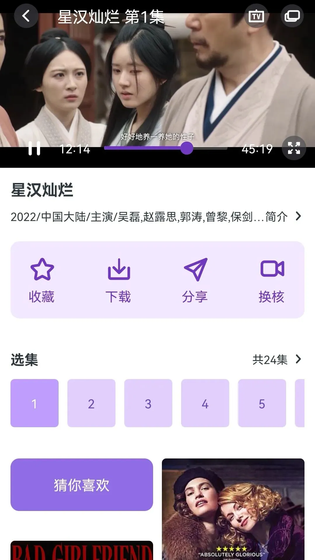 除了正常选集外,还支持缓存、收藏、换核,清晰度也是杠杠的~