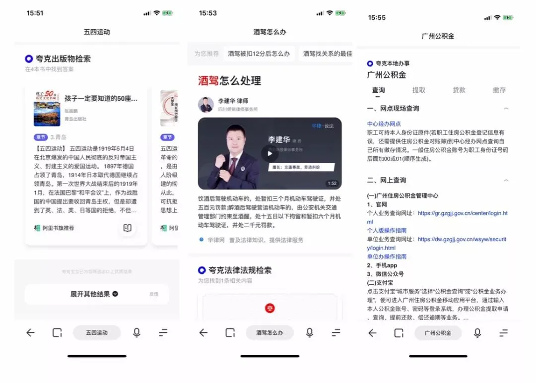 作为一个强大且智能的搜索引擎,夸克能做的远不止这些。简单的检索只是夸克的功能之一,深入探究解决用户摸不着北的疑惑,夸克一样能做的到。每当触及到我们的知识盲区,就会苦恼于不知道怎样才能得到权威且精确的信息。夸克找来了权威帮忙,目前APP已上线三大功能:出版物检索、法律搜索、政务搜索,让你边搜索边学习。