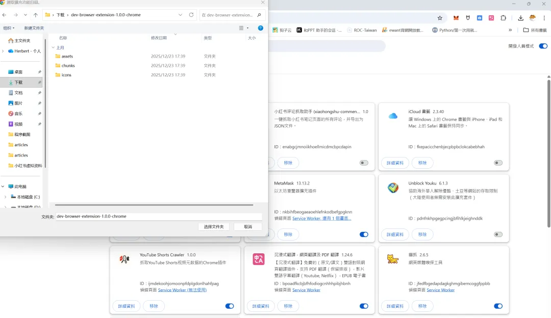 右上角把「开发者模式」打开