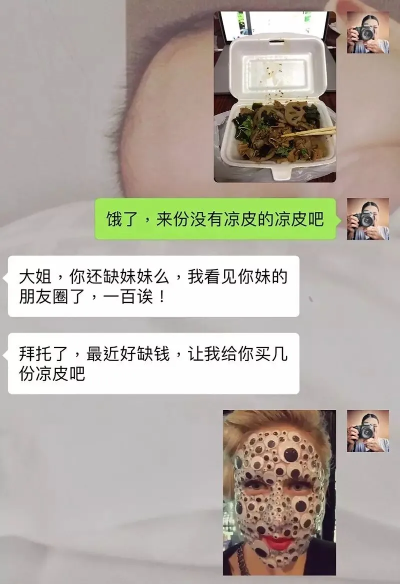 一个个都舔屏说要当我的妹妹,给我买一百块一份的凉皮吃,