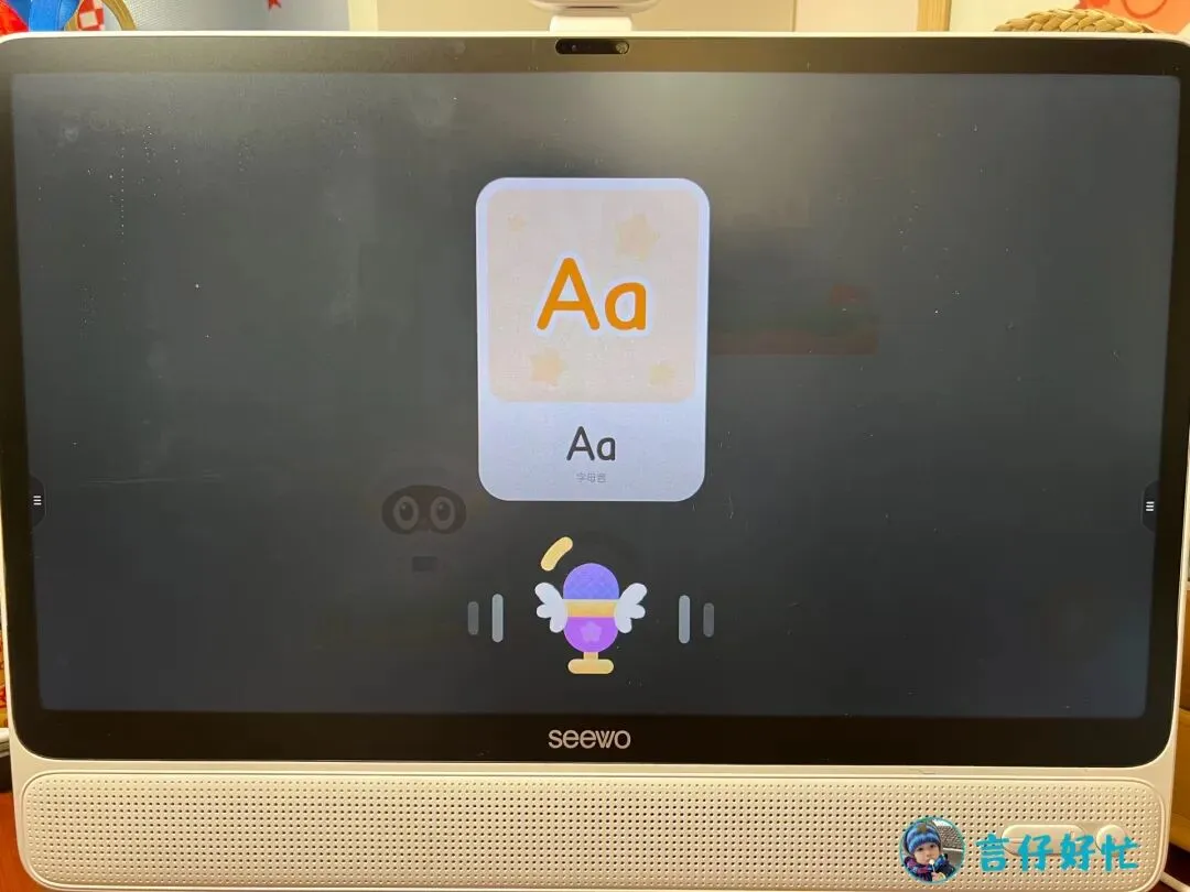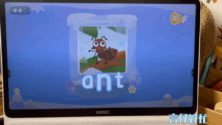 大家可以看到我同样是打开了ABC Learning的软件,希沃大屏上的光线是非常柔均匀的;但是iPad的屏幕上就会有我房间灯光的反光点,看着非常的晃眼,当然也会影响孩子的专注度。