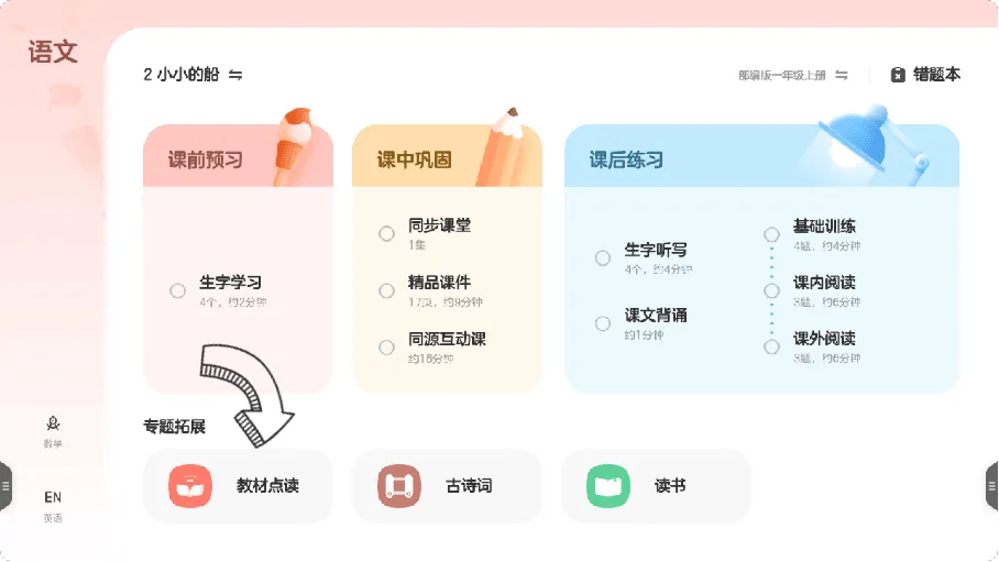 在希沃学习机里,还有一个对言言来说非常实用的“随堂学”功能,言言也经常用它来做同步预习和复习。
