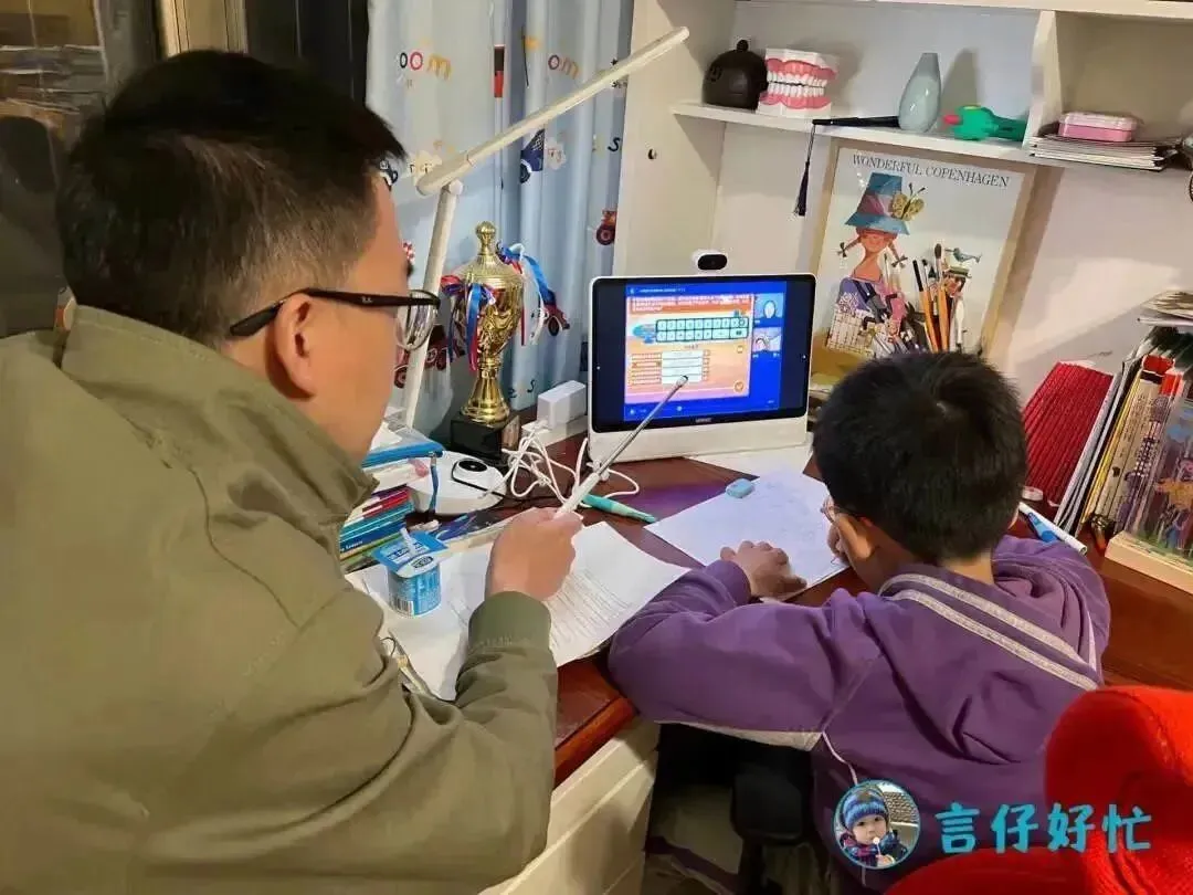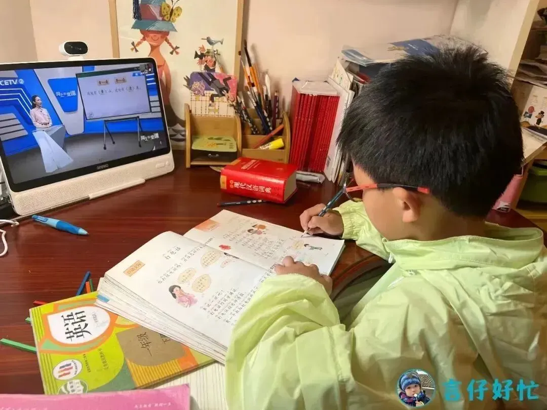 现在全国很多城市疫情反反复复,像言言就已经在家学习半个月了,大多数学习时间都花在屏幕上。我特别庆幸及时入了一台希沃学习机,让他的网课能在一台舒适的大屏幕上度过。