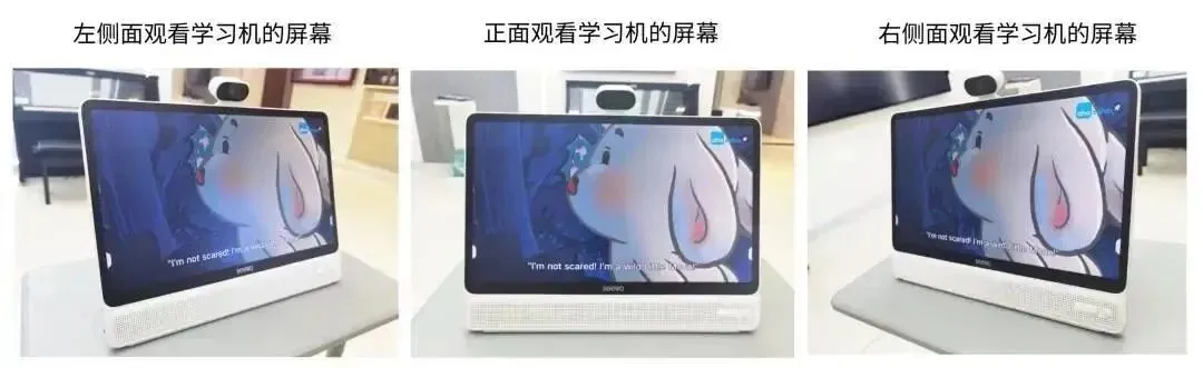 W2通过多层扩散光学结构,把屏幕光线打散,孩子在不同角度上看屏幕时,可以缓解因亮度和对比度较大变化而引起的视觉疲劳。简单来说,就是正面看学习机的效果和侧面看学习机的效果差不多。