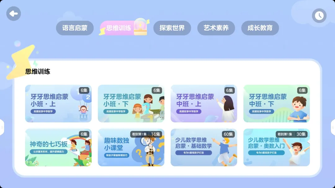 围绕“艺术素养”,通过艺术名作鉴赏提高儿童的艺术审美能力。同时还搭配了趣味画板,孩子可以根据自己的能力和兴趣选择不同的模式进行创作~