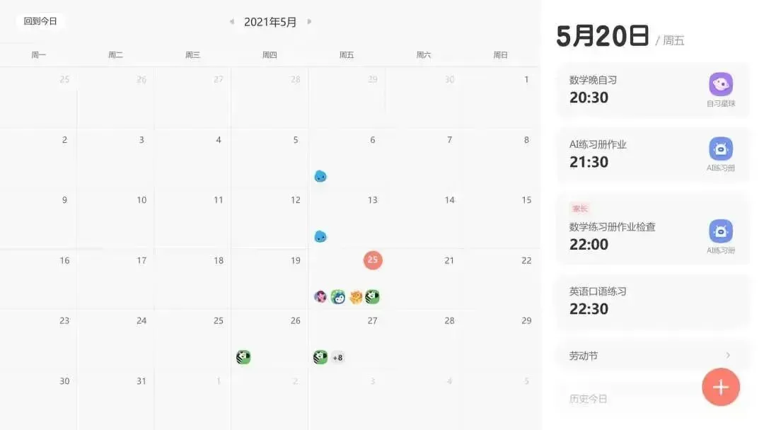 家长也可以用学习日历,帮孩子规划好每一天的学习日程,关联对应APP,到学习时间就会提醒,轻轻一点就会跳转APP了。