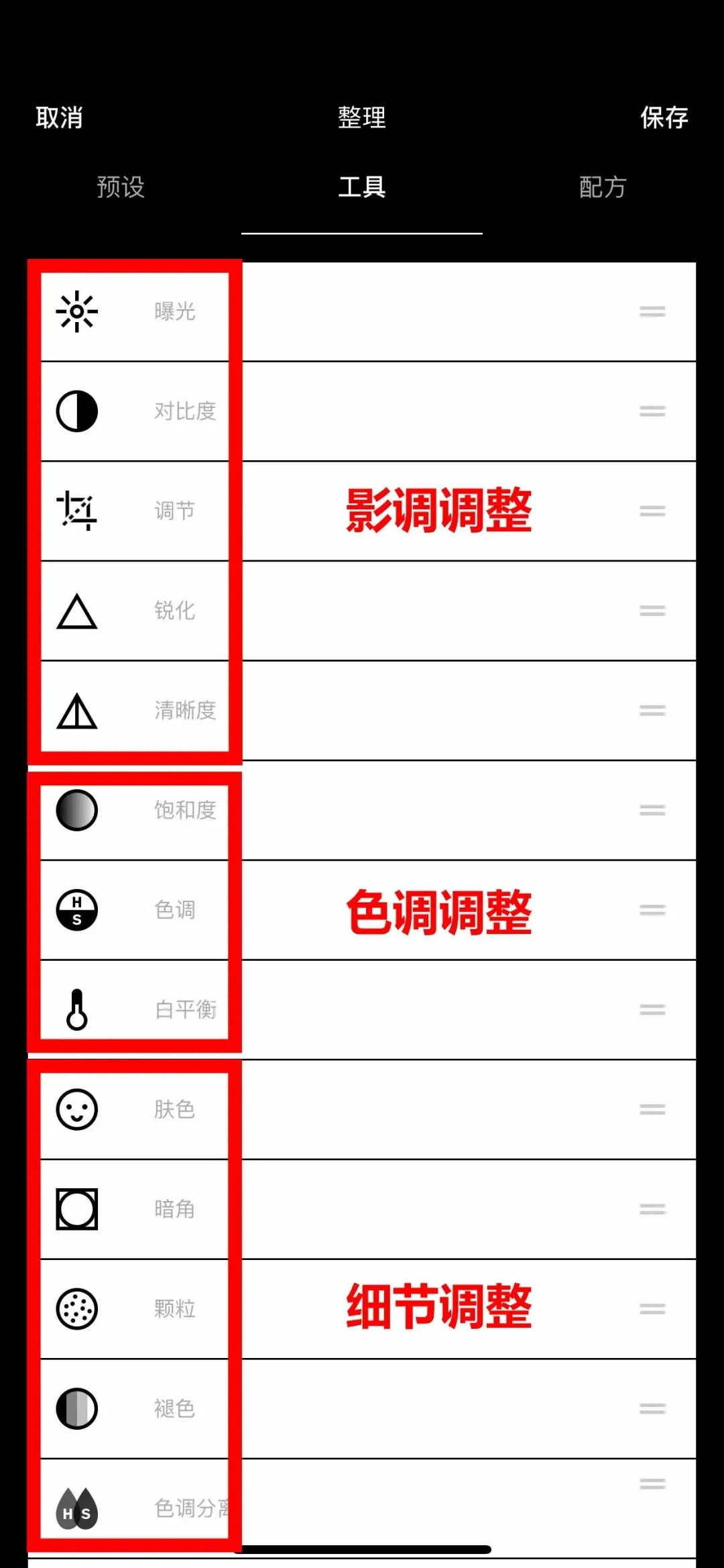 基础编辑:包含了影调处理、色调处理和一些细节化的调整。
