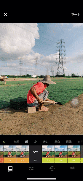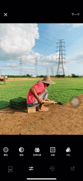 当然由于snapseed存在一个弊端,没有hsl工具调整局部颜色,所以我们将成片导入上面提到vsco进行局部颜色调整。