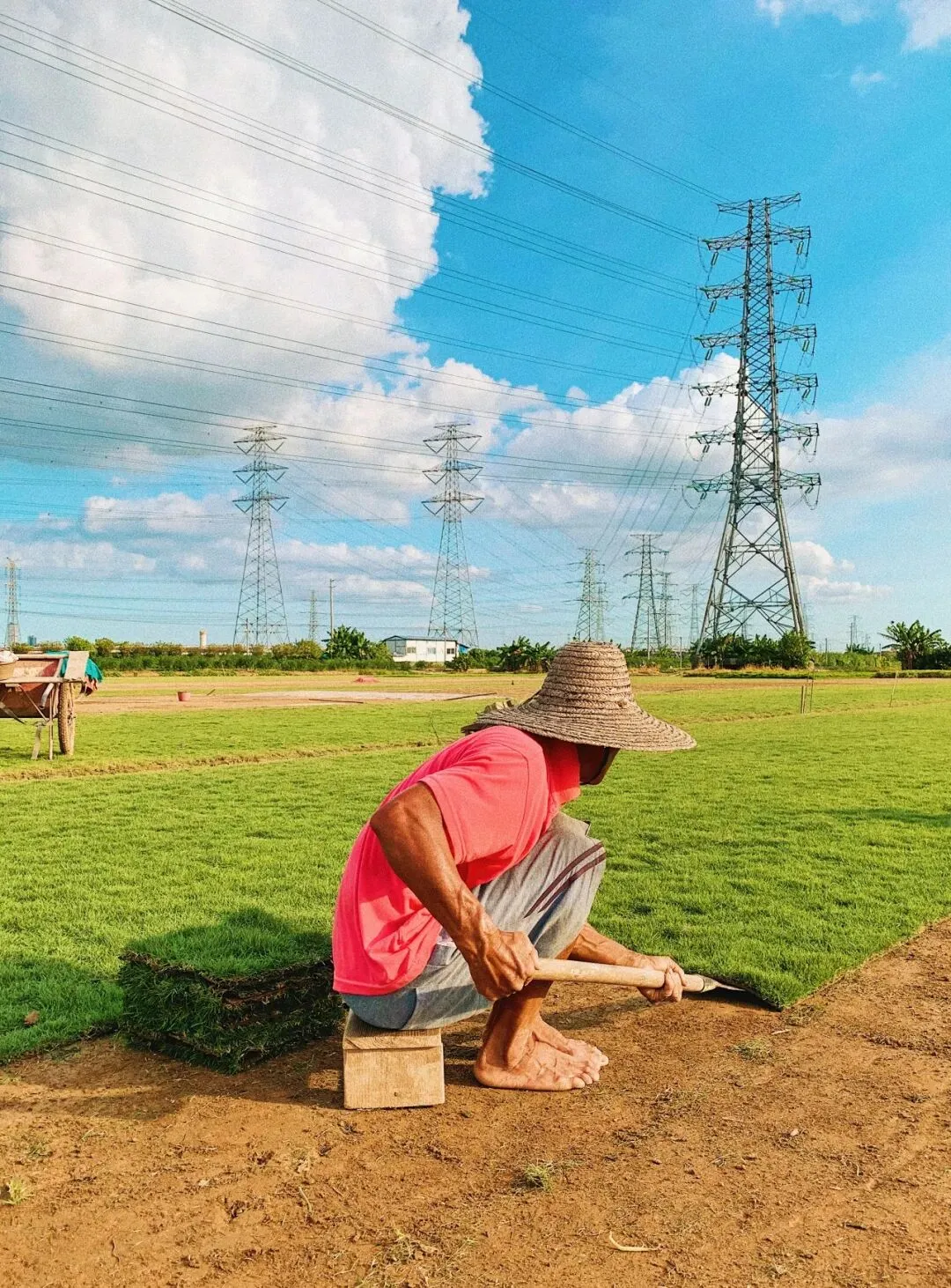 色调调整:通过色温工具滑动,让整体画面偏向暖;利用hsl工具给画面单独色系进行处理。蓝色往左偏向青蓝,增加饱和度,提高绿色草坪的明亮度。暖色系一样,增加衣服饱和度明亮度,让人物成为画面突出的中心点。有hsl工具的vsco,真的很强~