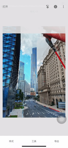 还有一个不足就是我们拍摄建筑时候都会存在的问题,透视畸变,这里我们就可以很好的利用snapseed的透视工具进行调整。