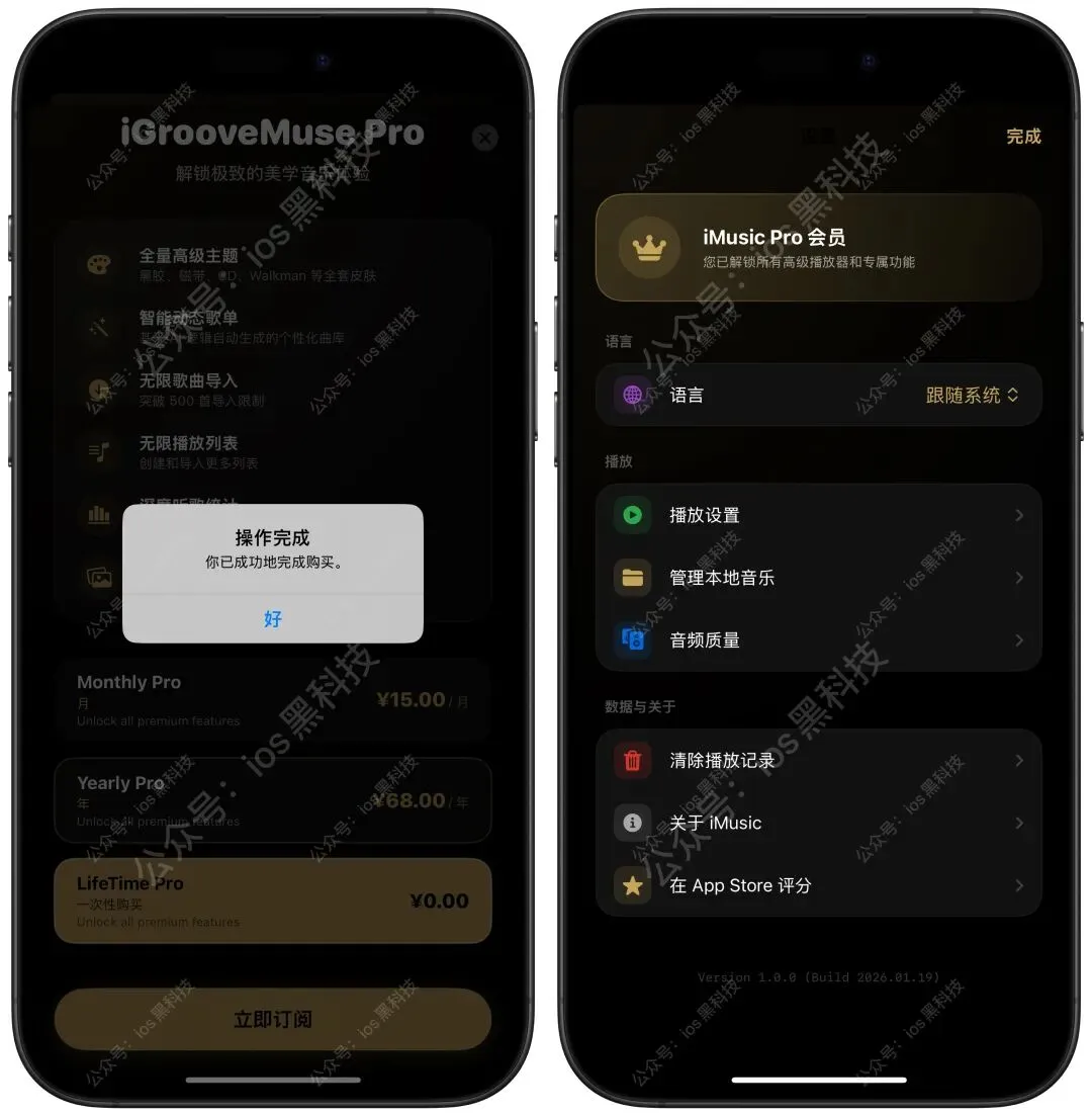 iGrooveMuse是一款设计精美的沉浸式本地音乐播放器,核心功能围绕复古播放体验、沉浸式专辑管理、高质量分享,支持几乎所有主流音乐格式、支持高解析度无损音播放。。今天这款软件终身会员版限时免费,苹果商店软件介绍页面下拉到 APP内购买 ,可查看内购是否还在限免,手慢则无,速度收入。