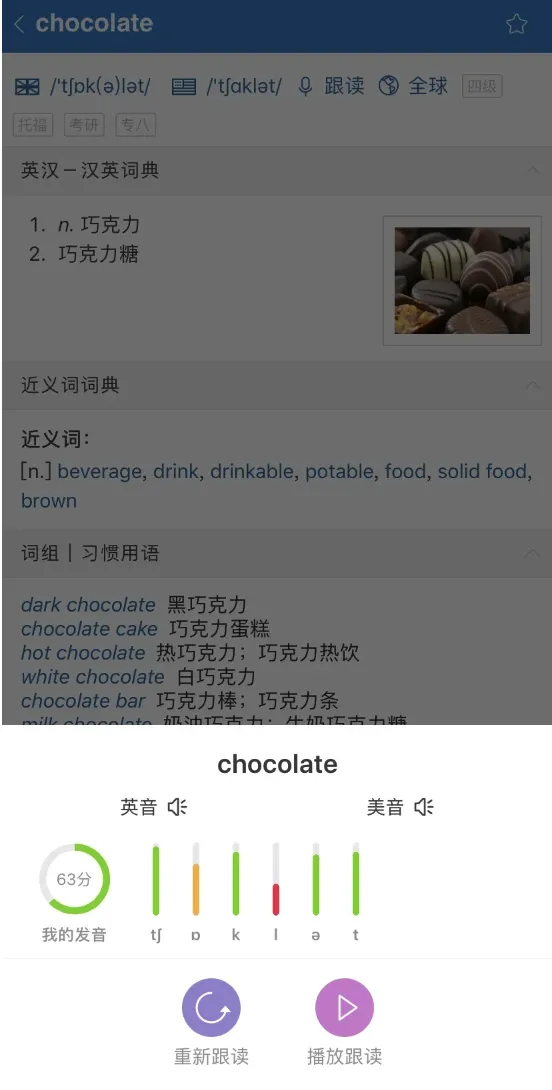 比如,根据学习者的目标,有不同的词库,从小学、大学四六级、雅思和托福的单词全部都有。