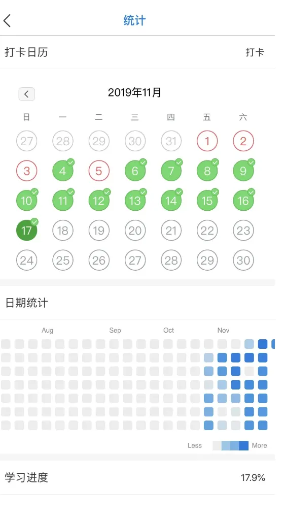 当然,还有很流行的学习进度跟踪和打卡功能,