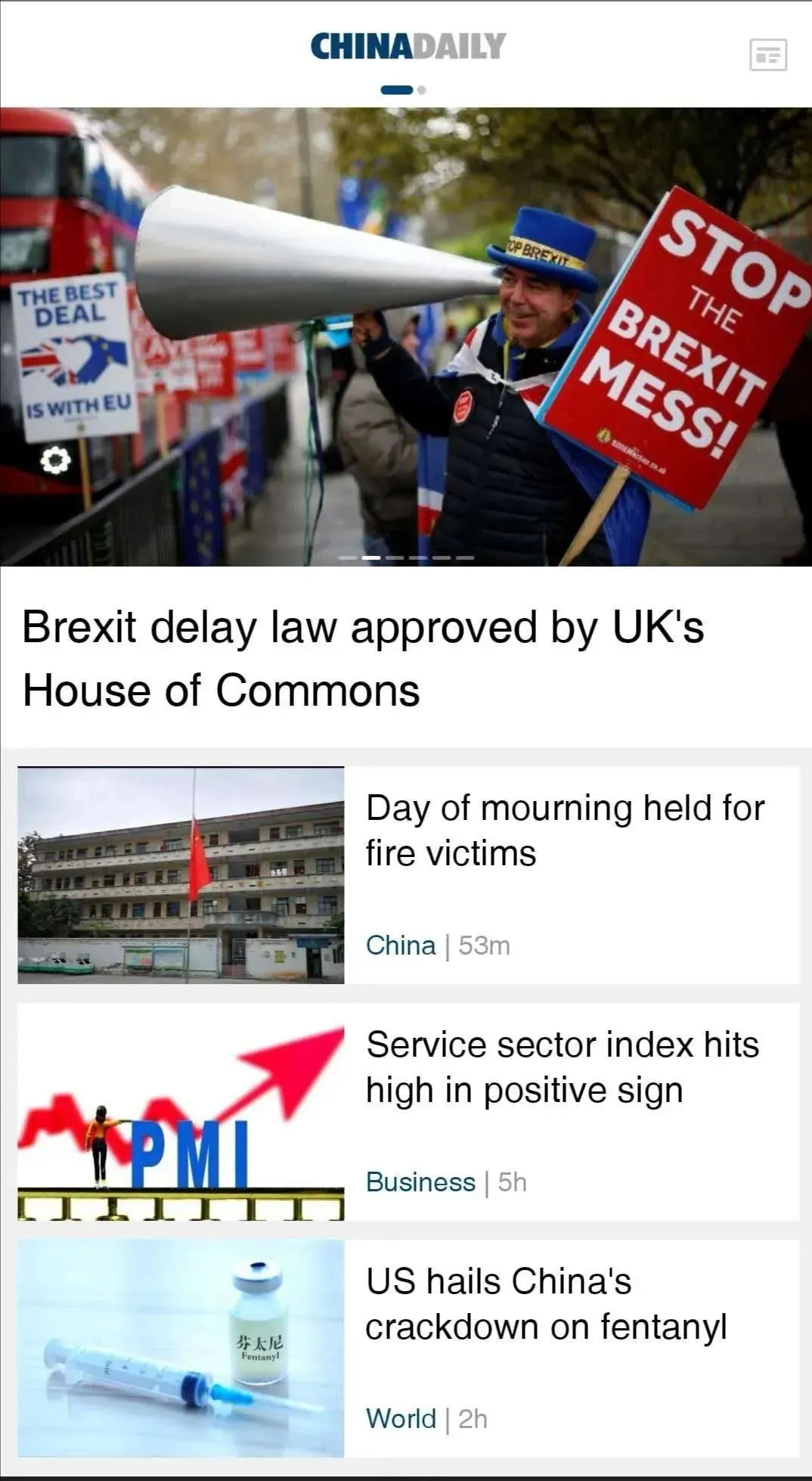 Chinadaily是我们国家的官方声音,它每天会更新大量原汁原味的英语时事新闻。