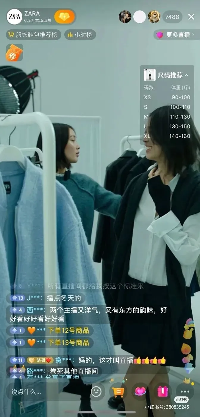 从东方甄选、椰树到董洁,直播发展到现在的时期,形式上非常多样化,ZARA 的品牌调性和这次的直播 campaign 非常契合,主打极简、质感、欧风、设计感的品牌,和通过高配合度的美术、灯光、摄像、主播、调度等塑造出来的秀场体验式直播是匹配的。据悉,这次的直播 campaign 并不是一次性的活动,是个持续的系列。显然,ZARA 对于直播的期待不止是短期的 GMV 目标,而是它们一直希望做的,撕掉身上的快时尚标签。