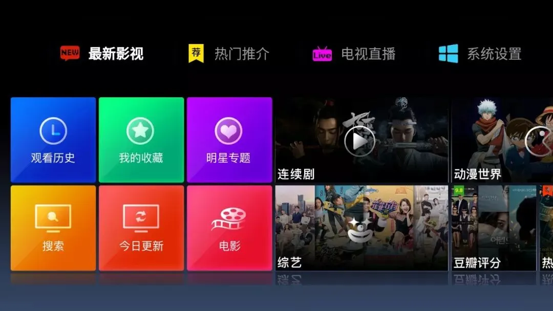 这款盒子相信大家都比较熟悉了,因为之前分享过,它还有安卓和iOS端。这是更新速度最快的电视盒子应用,里面包含最新电视剧、动漫、综艺、豆瓣电影,还有电视直播频道。