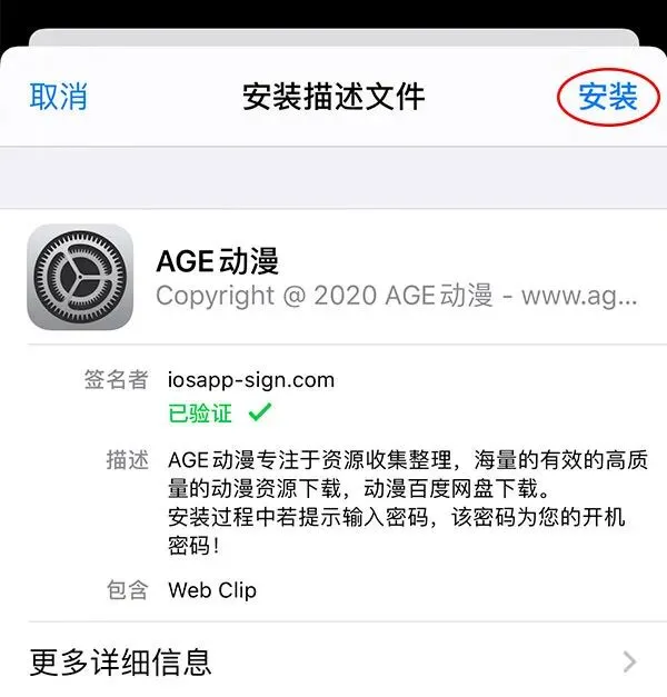 step3:在右上角,点击安装描述文件。