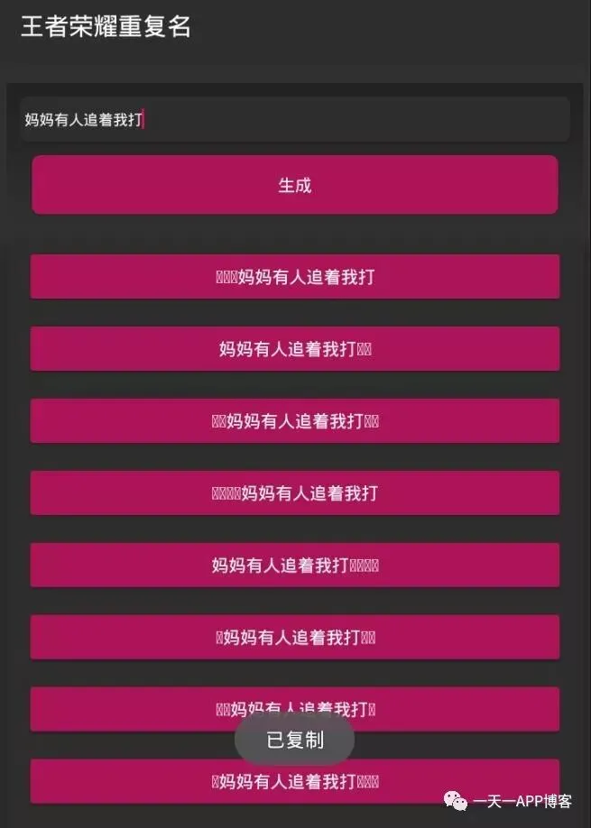 会生成好多重复的名字,点一下就复制了。我们复制一个出来看看效果