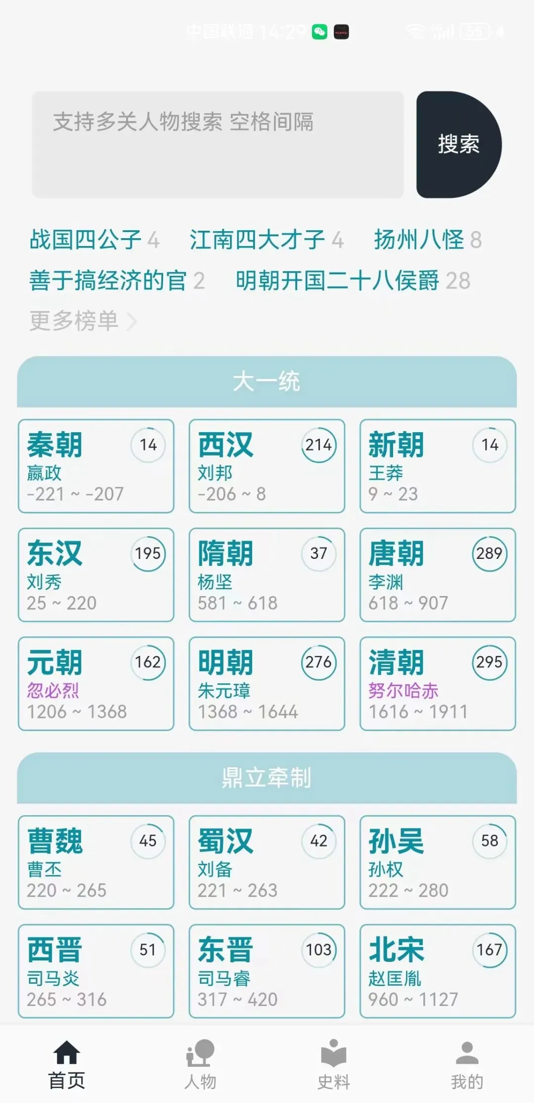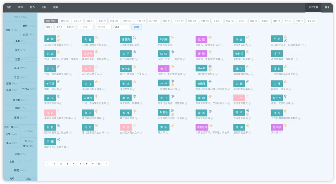 历史年轮。基本上从秦朝大一统开始之后的历史重要人物,这款APP都收录了,软件是完全免费的,会员功能只是拥有筛选功能。
