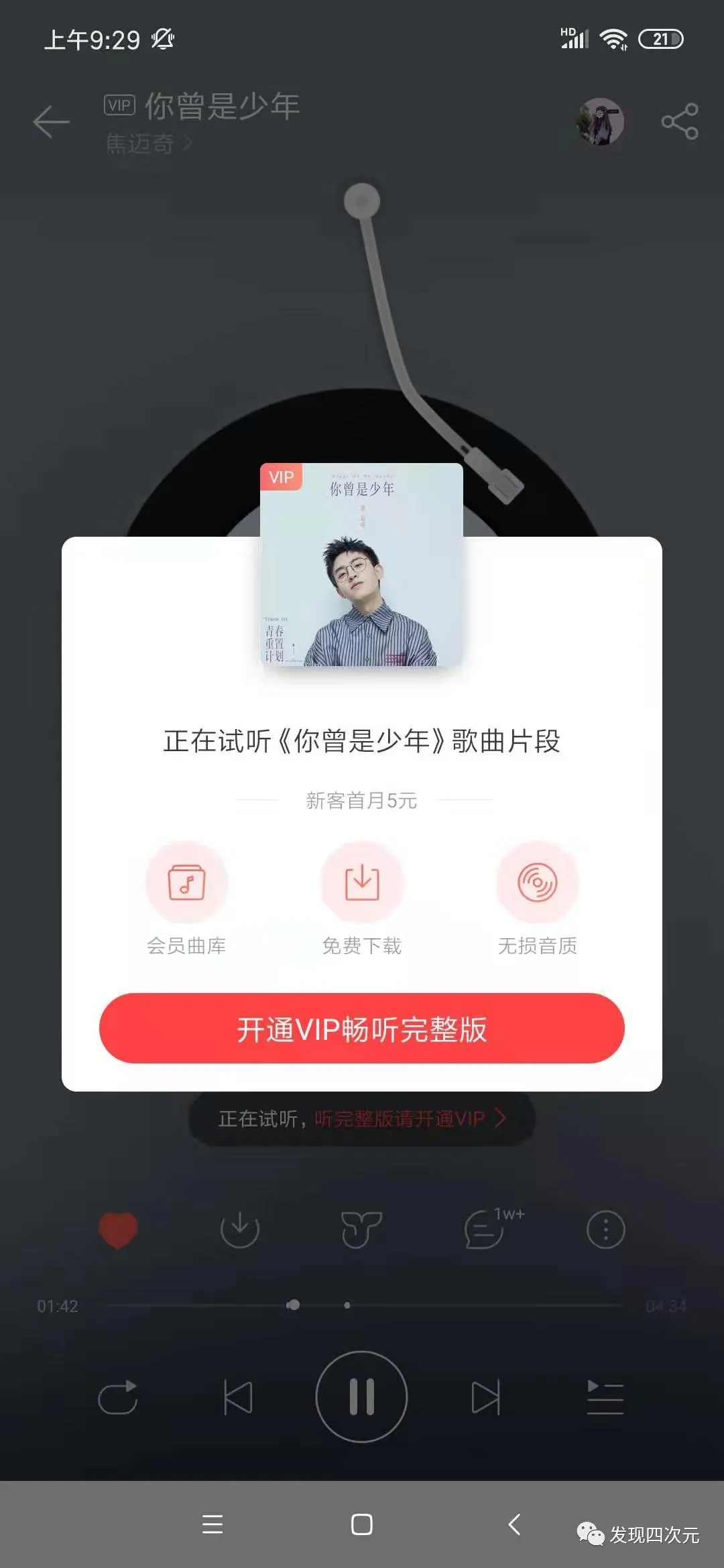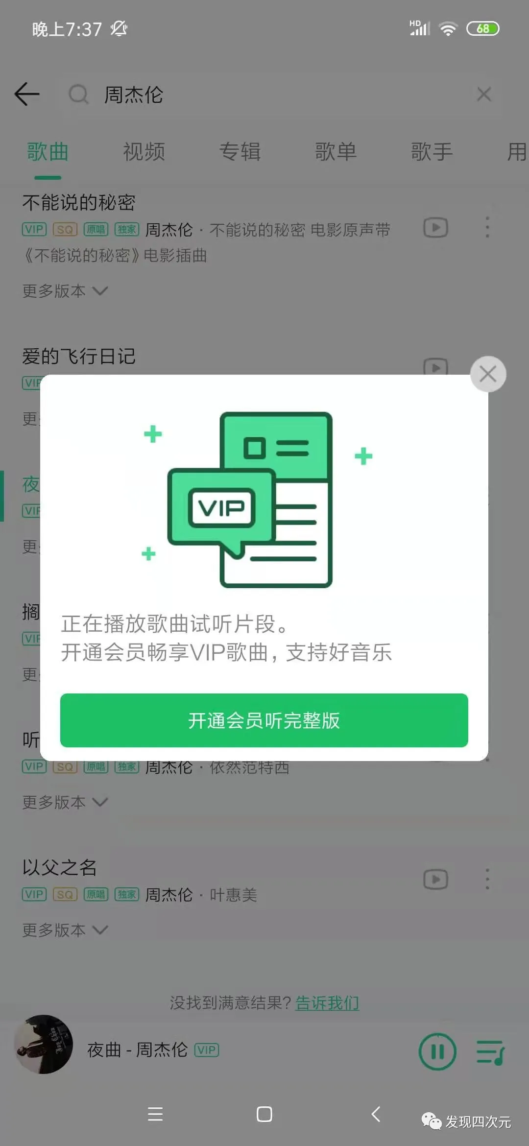 更过分的是,你还得买QQ音乐的VIP会员,才能听到完整版: