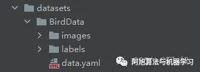 图片数据的存放格式如下,在项目目录中新建datasets目录,同时将检测的图片分为训练集与验证集放入BirdData目录下。