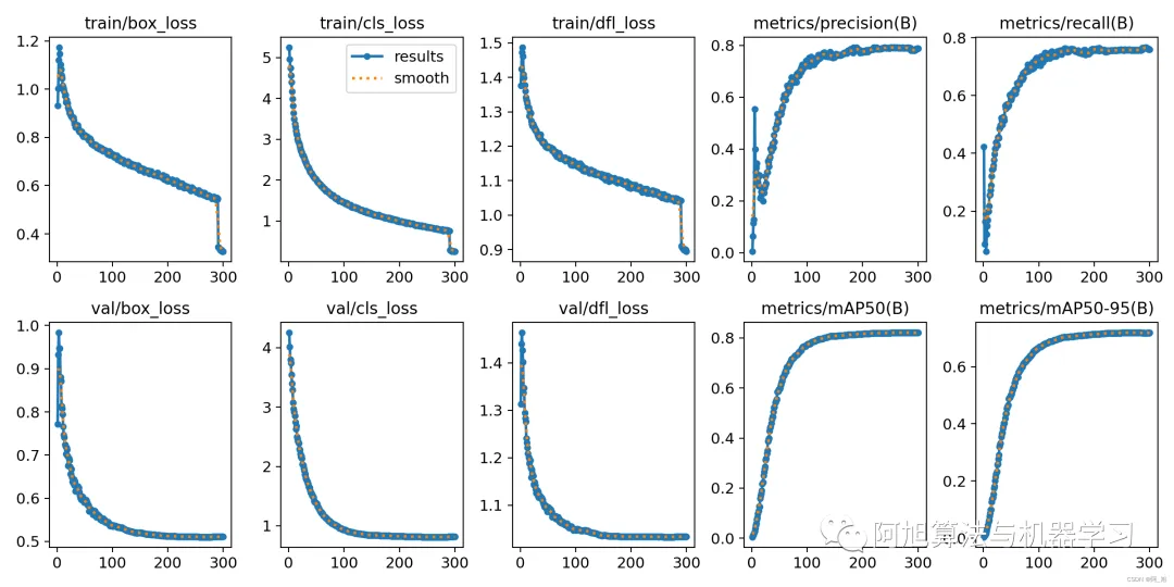 动态特征损失(dfl_loss):DFLLoss是一种用于回归预测框与目标框之间距离的损失函数。在计算损失时,目标框需要缩放到特征图尺度,即除以相应的stride,并与预测的边界框计算Ciou Loss,同时与预测的anchors中心点到各边的距离计算回归DFLLoss。这个过程是YOLOv8训练流程中的一部分,通过计算DFLLoss可以更准确地调整预测框的位置,提高目标检测的准确性。本文训练结果如下: