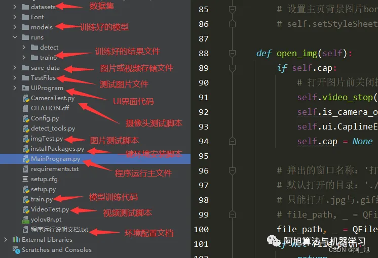 MainProgram.py,其他测试脚本说明见上图。为确保程序顺利运行,请按照程序运行说明文档txt配置软件运行所需环境。关注下方公众号:【阿旭算法与机器学习】,回复【软件】即可获取下载方式