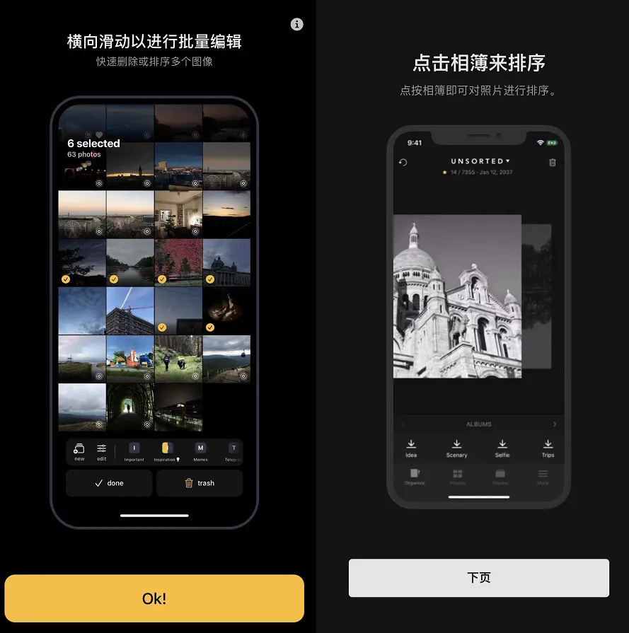 除了这个非常好用的删除功能,phoom 在整理照片上也非常有一手。