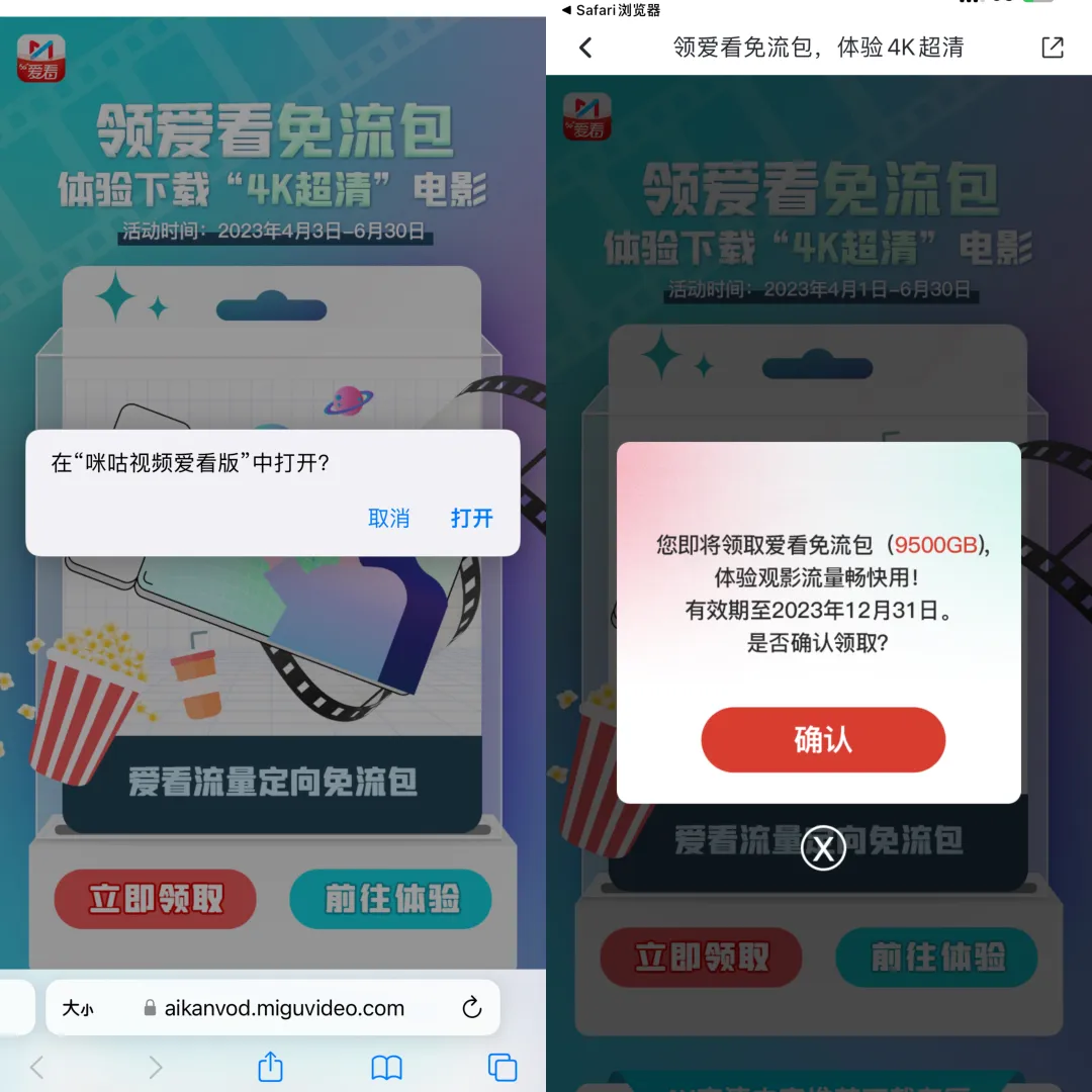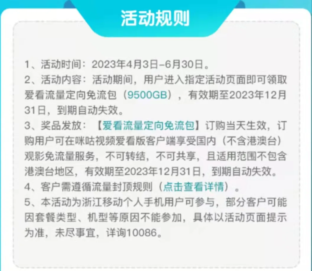 备注:9500GB流量为咪咕视频爱看版APP内通用,限国内(不含港澳台)