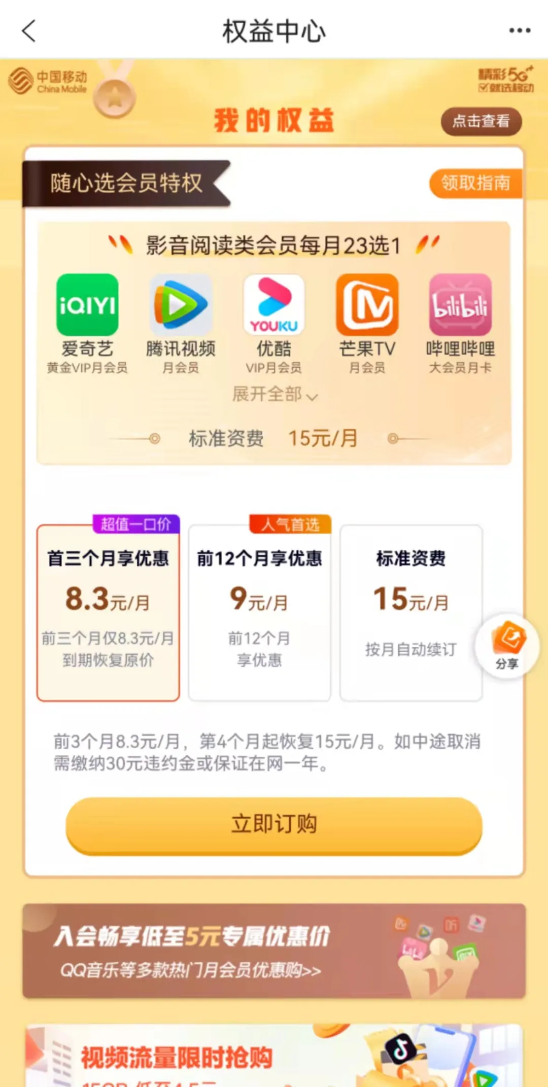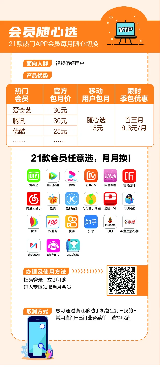 爱奇艺/腾讯视频/优酷/芒果/哔哩哔哩,都想看、都要会员怎么办?办个移动“随心选”,20多个APP会员每月换着领!